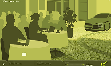 Nanoreisen (ננו נוסע) מסע גילוי וירטואלי לתוך עולמות מיקרו ננו קוסמוס. על מסלולים שונים אתה יכול בהדרגה "לכווץ את עצמך" לתוך עולמות בלתי נראים לנו לחדור לתוך הממדים הידועים הקטן ביותר של היקום שלנו.